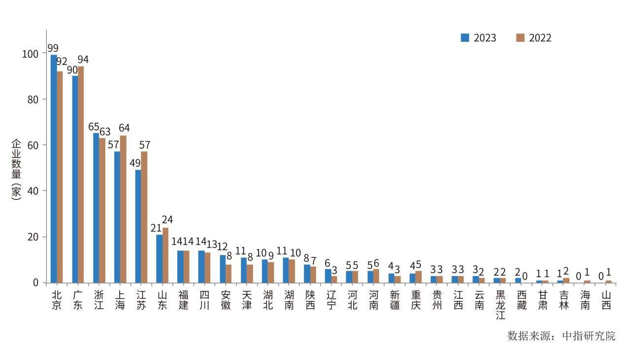 圖3 2022年和2023年新經濟企業TOP500省份分布