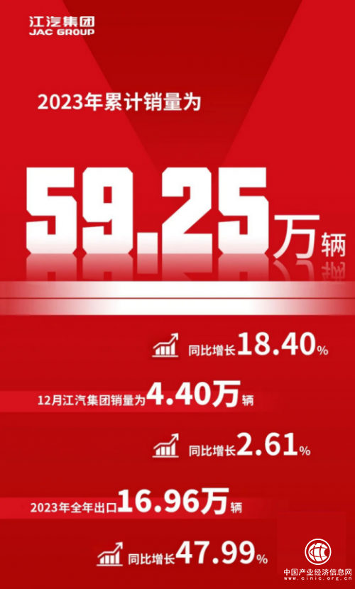 根據2024年1月5日江淮汽車集團發布的《安徽江淮汽車集團股份有限公司2023年12月產、銷快報》的數據顯示,2023年12月江汽集團銷量為4.40萬輛截至2023年12月,江汽集團當月銷售量達到4.40萬輛,同比增長2.61%。全年累計銷售量更是高達59.25萬輛,同比增長驚人的18.40%。出口量達到16.96萬輛,同比增長高達47.99%。