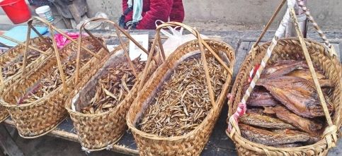 1月5日,臨江鎮集市上售賣的特色魚干。蘭玉花供圖。