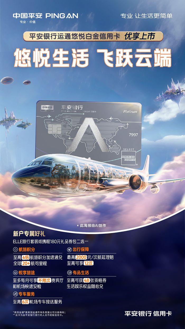 1月18日,平安銀行攜手美國運通傾力推出專注商旅出行與品質生活服務的龍年新卡——平安銀行悠悅白金信用卡(以下簡稱:平安悠悅白金卡),以商旅權益隨心享、月享權益隨心兌、三大版本隨心選特色服務,為客戶提供舒適便捷、品質超凡的一站式高端出行體驗,助力客戶新年從容出發,縱享悠悅生活。