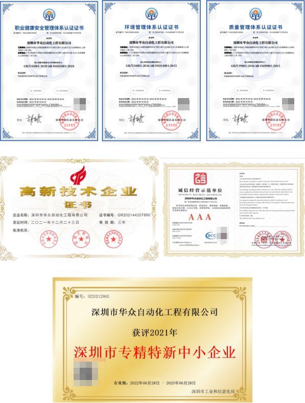 華眾自動化部分榮譽證書展示