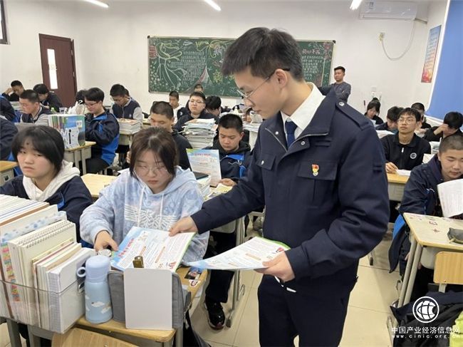 圖為安吉縣局普法工作人員在校園進行普法宣傳。潘洋洋攝
