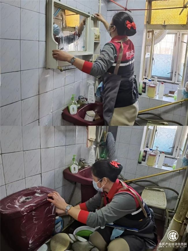 87歲的李爺爺平時跟老伴住,女兒每周回來探望照護,沒有精力顧及衛生間這種清潔難度較大的死角。按約定時間上門的京東家政保潔師趙軒,依照標準服務規范穿上鞋套,首先掃視了一圈衛生間狀況,隨即從雙肩包里掏出各種專業清潔工具,有條不紊地開始清潔工作。藏污納垢的馬桶、蒙塵的鏡子、有污漬的墻面和地板等等,全都仔仔細細擦洗,還把擺放在里面的衛浴用品都清洗收拾了一番。再加上全新安裝的淋浴椅和助起扶手,煥然一新的衛生間讓常爺爺眼前一亮,笑稱“衛生間變新了”。