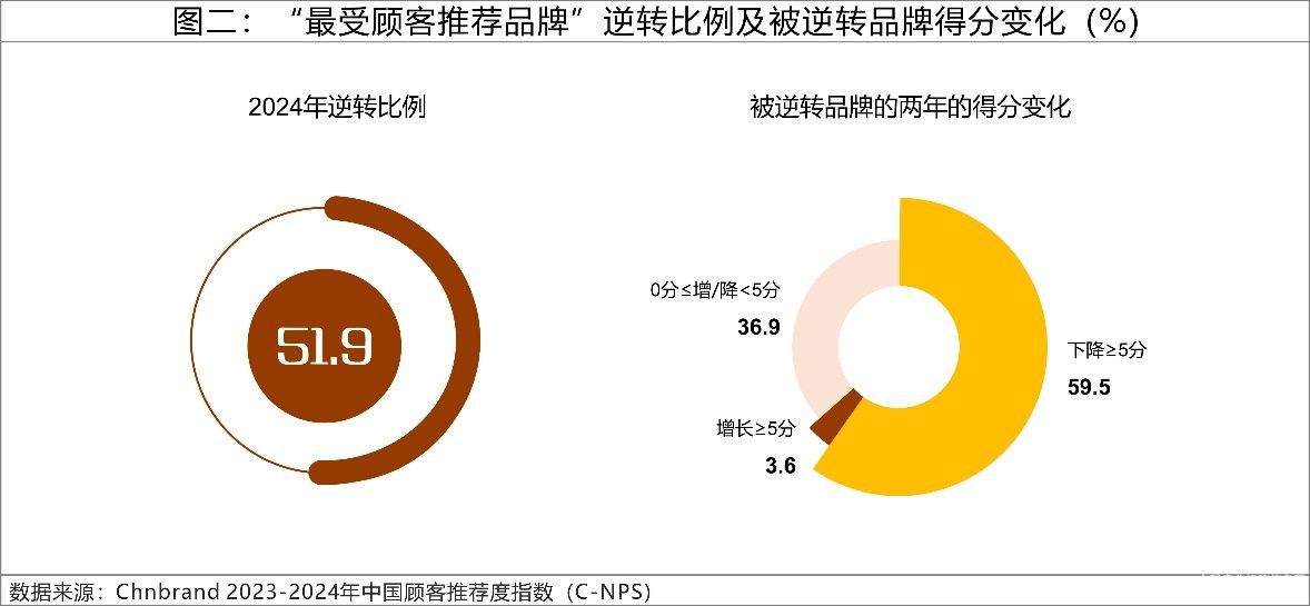 2024年“最受顧客推薦品牌”的逆轉比例為51.9%,較上年度增加1.6%,C-NPS逆轉比例仍然居于高位。