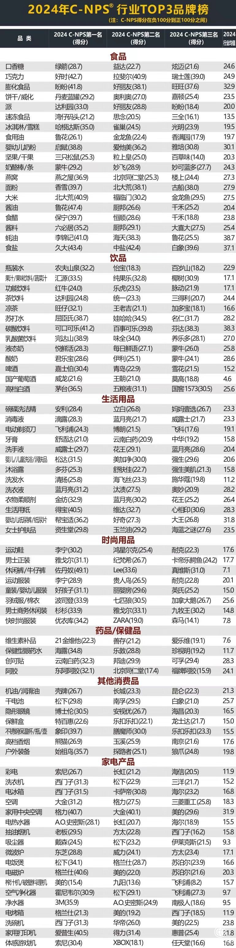 2024年C-NPS調查區域覆蓋全國100+城市,調查對象為15歲到64歲之間的常住居民,并根據性別、年齡、收入進行隨機抽樣,總樣本數量為2659000多個,采用線上調研的方式完成,覆蓋163個細分行業,涉及被評價主流品牌10150余個。(尚文)