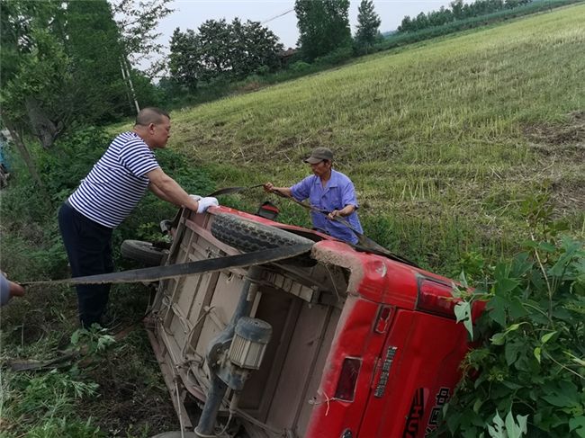 這并不是遇上的第一例交通事故,早在5月16日,一輛三輪車側翻在一個鄉間小道旁的溝渠中,當陽市煙草專賣局的送車組人員們發現及時,奮不顧身,迅速展開救援,用實際行動踐行著責任與擔當,及時將傾覆車輛拖出水渠,避免了事故的再次擴大。