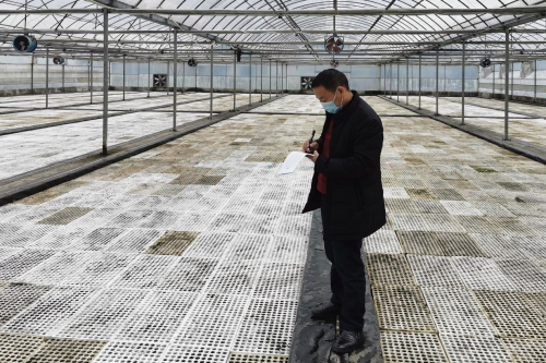 曾倫高正在記載大棚內溫濕度情況