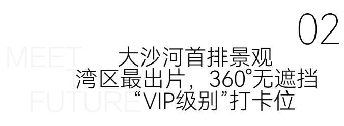 站在大廈高處往外看,360°無遮擋的灣區全景,一眼盡覽!視線所及處,可見大南山一蛇口一深圳灣濱海休閑帶、大沙河一塘朗山一陽臺山的生態遠景,43.7公里世界級活力海岸線蜿蜒向前,獨瞰山、海、河、公園、高爾夫五重生態秘境,悅享都市罕有的自然環抱之感。
