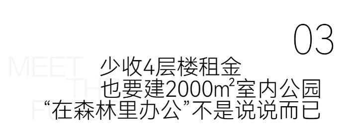 與此同時,層疊、共生的綠植們,自成一套生態系統,巧妙調節建筑溫度之余,為辦公場域引入生態活力。鮮氧沛然,活力森境,當人們身臨其境,與自然“森”呼吸。