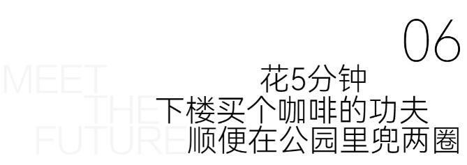 當你需要一杯咖啡時,乘坐電梯直達公園,等待的間隙,漫步于植物叢中,聞著草本清香,驅走一部分疲憊感。
