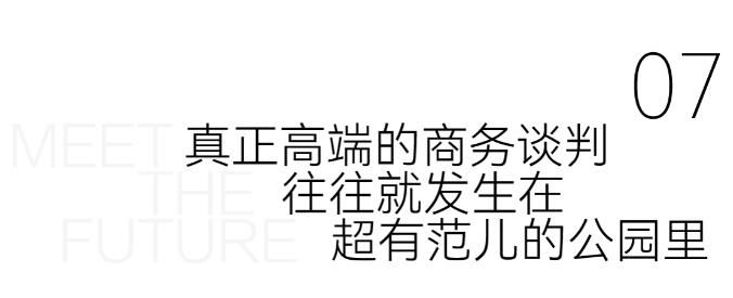 在這里,高端商務談判沒有按部就班的流程,可以先玩玩攀巖,逛逛公園,坐下來喝喝咖啡、聊聊項目,雙方信任到位了,資源匹配上了,建立合作就是水到渠成的事!