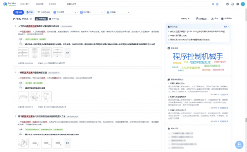 此外,Eureka為不同搜索習慣的用戶保留了簡單搜索模式,并在此基礎上利用AI能力,煥新重構其搜索結果頁,大幅提升研發關鍵信息的獲取效率。在全新的搜索結果頁上,AI將根據搜索的主題,為用戶推薦相關專利、論文文獻、提煉重點技術關鍵詞、總結最相關的50條搜索結果內容、技術分布,并顯示相關企業等。