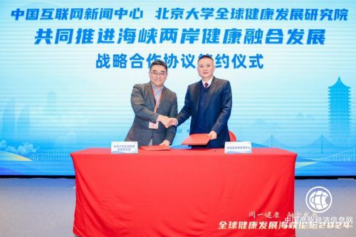 開幕式上,中國互聯網新聞中心與北京大學全球健康發展研究院簽署了“關于共同推進海峽兩岸健康融合發展的戰略合作協議”。未來,雙方將重點圍繞“全球健康海峽研究院”、“全球健康領域海峽兩岸融合發展示范區”、“海峽兩岸全球健康人文對話”機制和論壇峰會、“海峽醫療旅游先行區”、“海峽健康融合發展產業園區”、“海峽全球健康傳播中心”、“全球健康教育培育”等多個大健康項目進行深度合作。