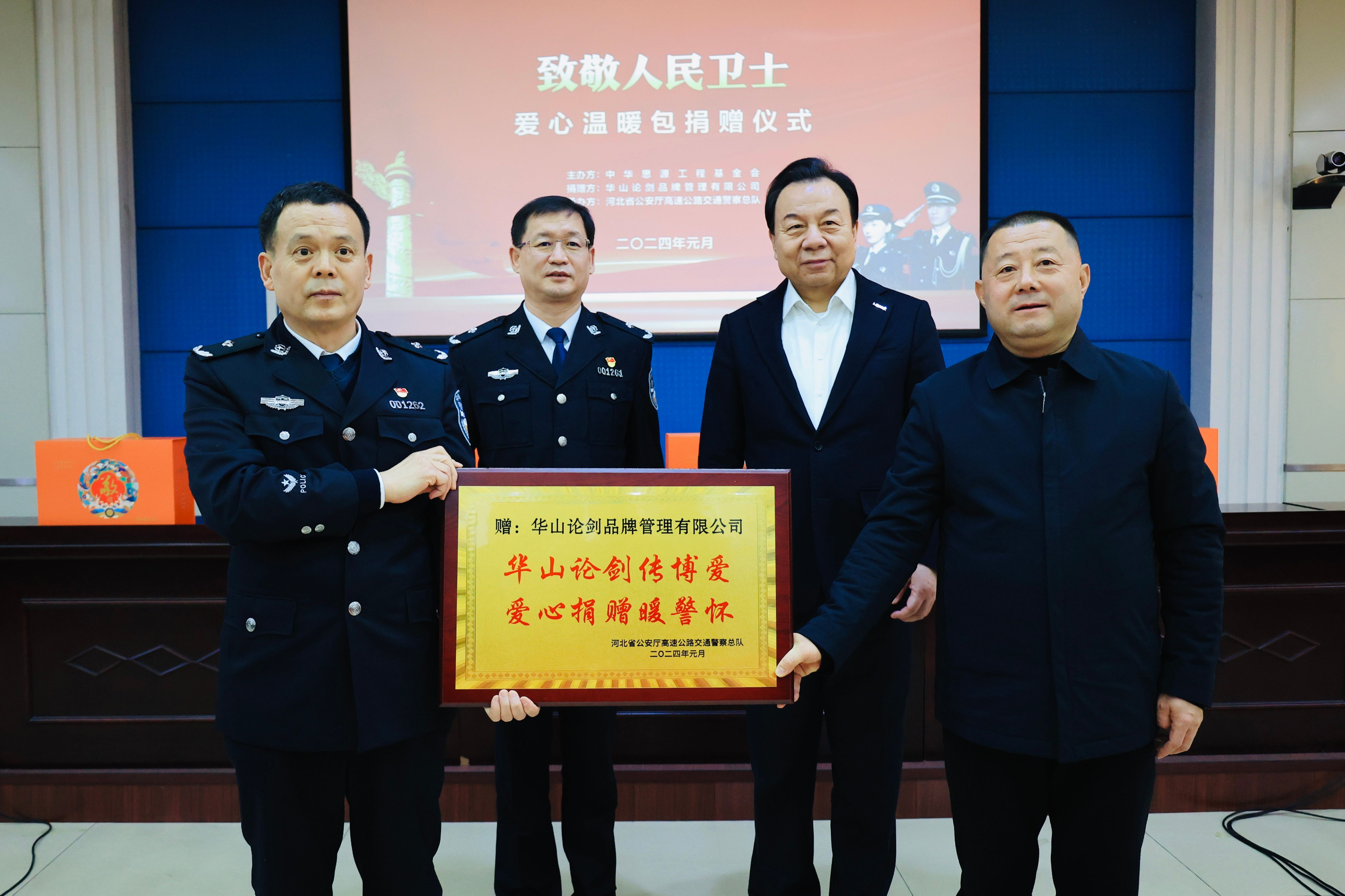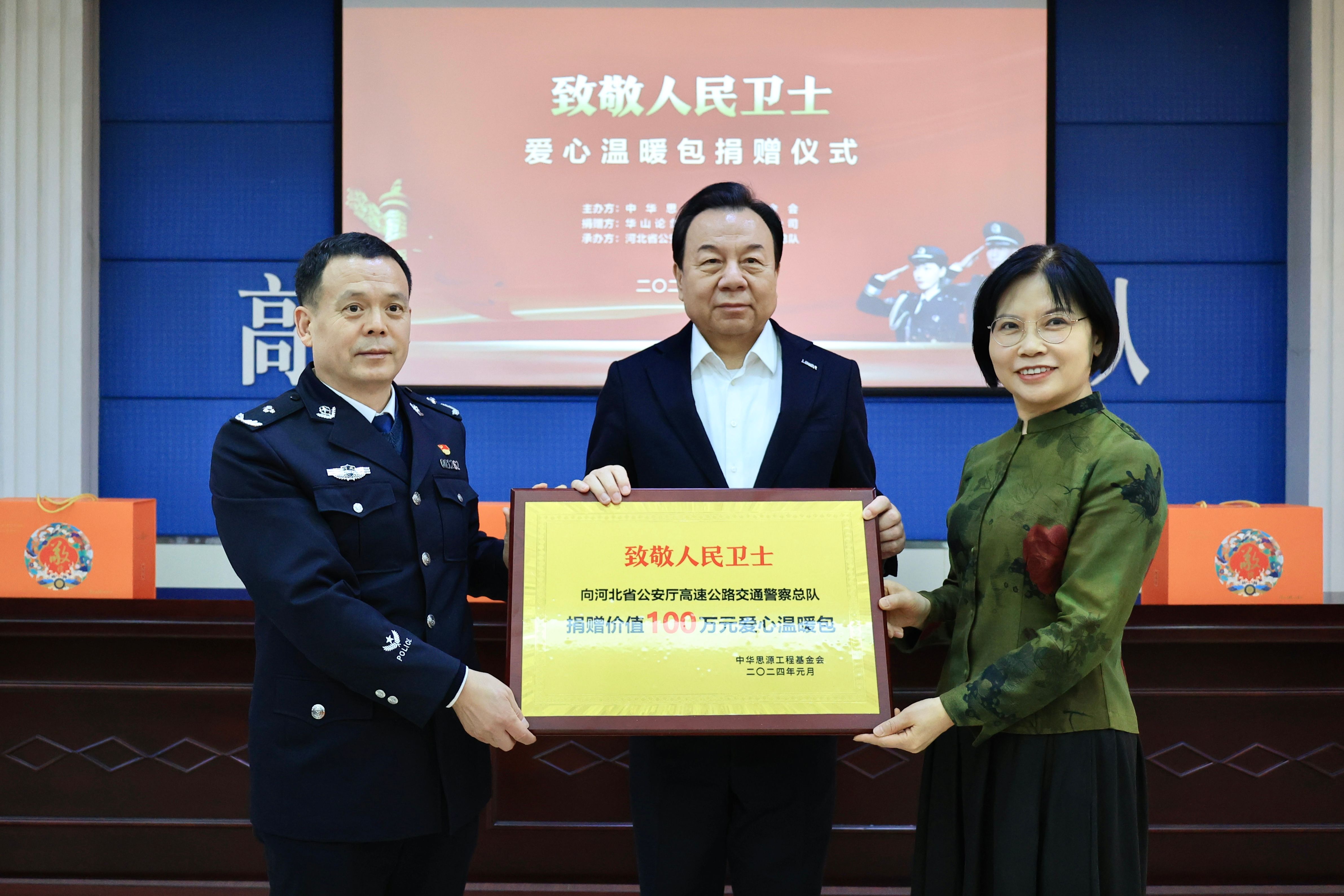 1月25日,中華思源工程基金會(以下簡稱“思源工程”)、華山論劍品牌管理有限公司(以下簡稱“華山論劍”)在石家莊市舉辦“致敬人民衛士”公益捐贈儀式,向河北省捐贈價值100萬元的愛心溫暖禮包。