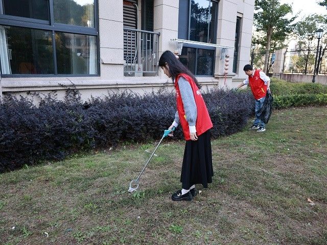除了愛滿鄉村,該局也將志愿服務送進城市社區。早上九點不到,泰順縣煙草專賣局黨支部的青年黨員們就如約來到結對社區,他們在老地方領取了垃圾袋、掃把、垃圾撿拾器等清潔用品,和工作人員們一起清理社區落葉、撿拾草坪煙頭,用實際行動維護社區公共環境。