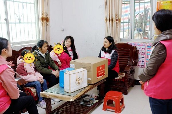 鄧麗君與婦聯領導一起首先來到了水口街道下源村的一戶困難家庭。戶主的母親聽力殘疾,愛人又2016年白血病去世,現在經濟來源靠低保金及在本村制衣加工廠做臨時工維持生活,收入非常微薄,希望能在新年有一臺微波爐。鄧麗君看到孩子貼滿墻的獎狀非常感慨,送上個人捐贈的微波爐以及其他節日禮品,鼓勵小姑娘好好學習,將來的生活會越來越好。