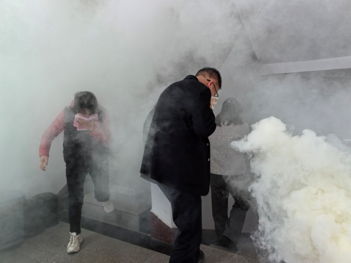 演練前,消防民警深入淺出地講解了火災起因、火災發展階段、火災蔓延方式、如何安全疏散、逃生方式等消防安全知識。講解了消防繩索、消防水帶、手提式干粉滅火器的使用方法,現場演示消防水帶的鋪設和滅火器的使用方法,并組織大家依次進行滅火器的操作演練,確保人人都會使用,生動演示突發火情時的逃生救援步驟。“一旦發生火災,不要驚慌失措,要保持鎮定,按照正確逃生方法有序逃生……”,在模擬火災情景中,濃煙四起,大家用濕毛巾捂住口、鼻,按照指示彎腰低頭,從樓道依次撤離到了安全地點。通過此次演練,提升了自我消防安全意識,增強了火災應急處置能力,切實做到防患于未“燃”。(朱曉婷)