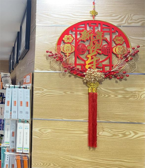 (圖:煙草工作人員為店內添加掛件增加春節氛圍)