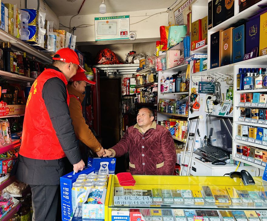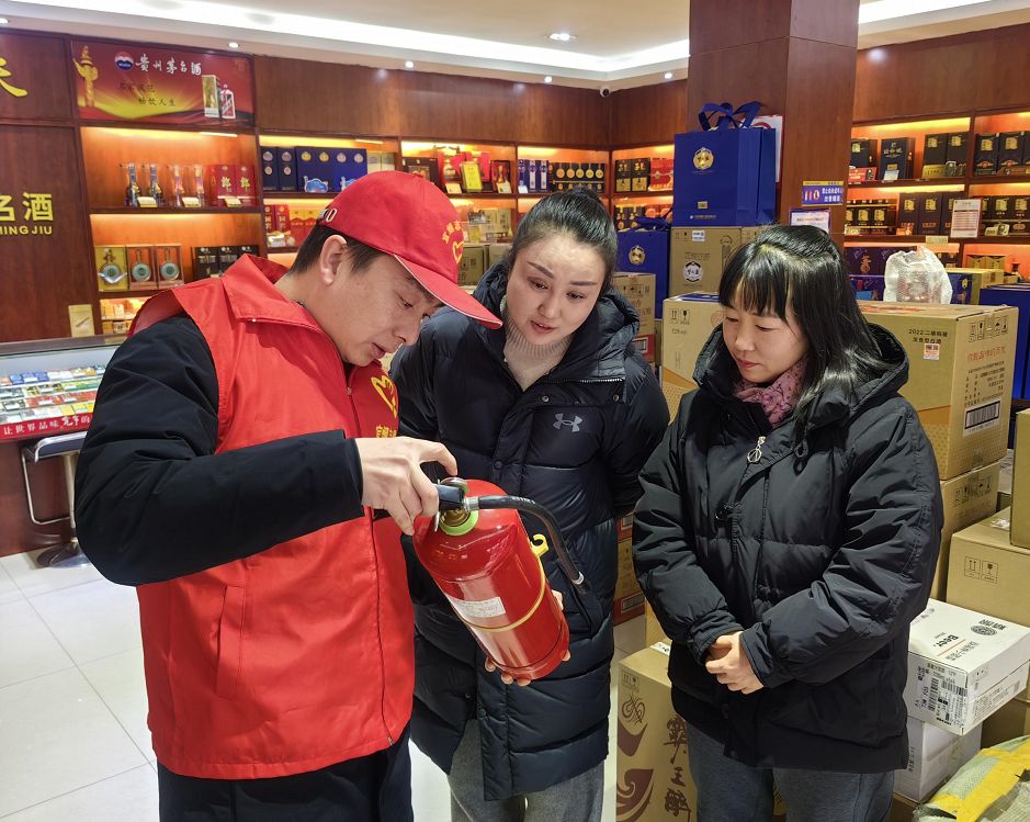 “王老板,春節即將來臨,安全意識更要加強呀!”志愿服務隊員張小飛一邊說著一邊幫助王老板檢查著店內消防安全情況。