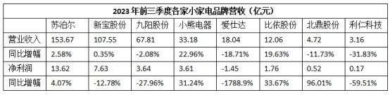 就看2023年,雖然整體市場進入冷靜周期,小熊電器依然持續上揚:奧維云網數據顯示,2023年1-9月,廚房小家電整體零售額同比下降9.6%,其中線上零售額同比下降9.9%,線下零售額同比下降8.9%;反觀小熊電器2023年前三季度,公司營業收入、凈利潤分別同比增長22.96%和31.24%,實現剛需品類快速增長、新興品類廣泛增長。