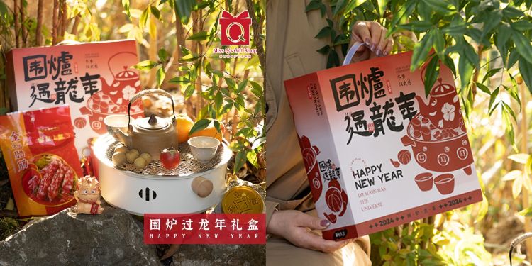 這款圍爐過龍年茶具禮盒,雖然茶具設計上并未有鮮明的龍年特色,但包裝和名稱上特別凸顯了“龍年”特色,并將應用場景具體化為一家人圍爐夜話,一起品茶,吃著茶點,歡歡喜喜過龍年大年。