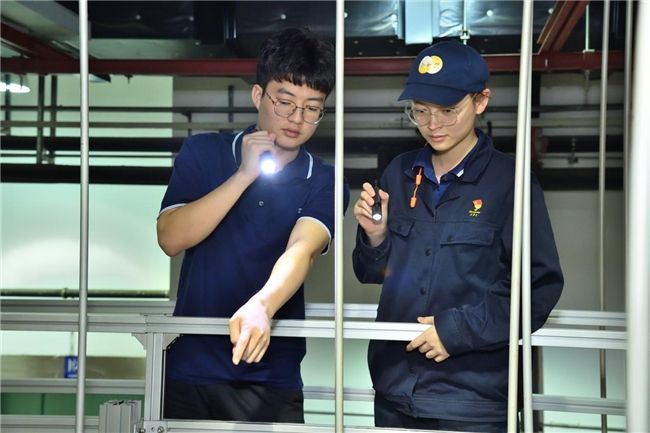 圖為員工正在生產現場進行安全隱患排查 ?周磊攝