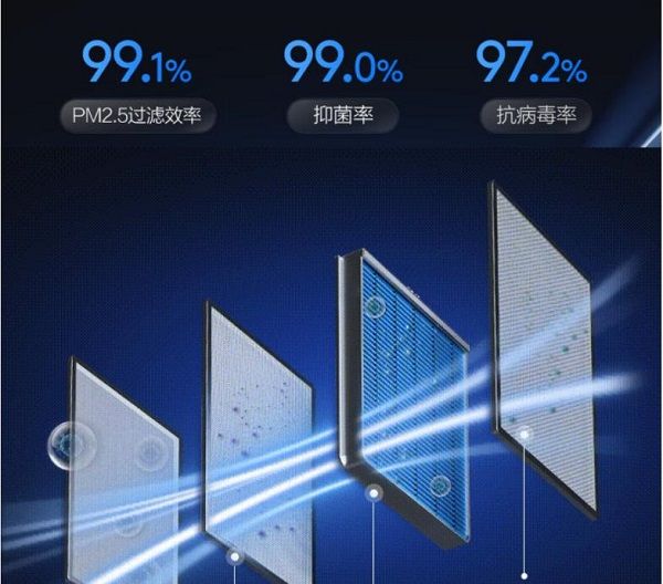 為實現由內而外的潔凈好空氣,TCL小藍翼P7新風空調特制四重HEPA濾芯,搭配納米級大小濾孔,可層層過濾 PM2.5、細菌、病毒等其他污染物,緩解呼吸焦慮,喚醒自在呼吸,以99.1%的PM2.5過濾效率、99.0%的抑菌率、97.2%的抗病毒率,創造健康宜人的居住環境,讓我們健康歡喜過好年。