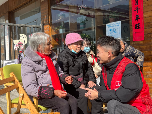 圖為志愿者正在向老人詢問新年愿望。朱曉芳 攝