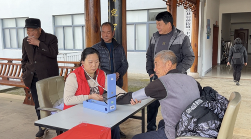 高血壓是影響我國老年人身體健康的一大慢性病。一上午時間,志愿醫生累計測量一百余人次血壓,村民們紛紛表示感謝。