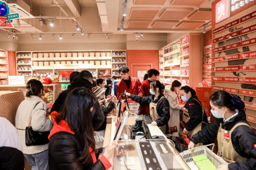 在全國3300多家門店以及線上渠道中,紅紅火火的“良品有福”禮盒不斷上新,消費者熱烈的購買潮一波接一波。“品質好,彩頭好!”在武漢航空側路一家良品鋪子門店里,有市民排隊購買年貨禮盒,點贊道。良品年禮市場反映火爆,據品牌相關數據顯示,其年貨節禮盒全渠道同比漲幅27%;社交電商同比漲幅215%;團購同比漲幅117%。
