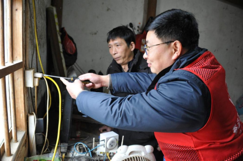 圖為“香溢”志愿者在村民家中為其排查線路隱患。周鋮鑫 攝