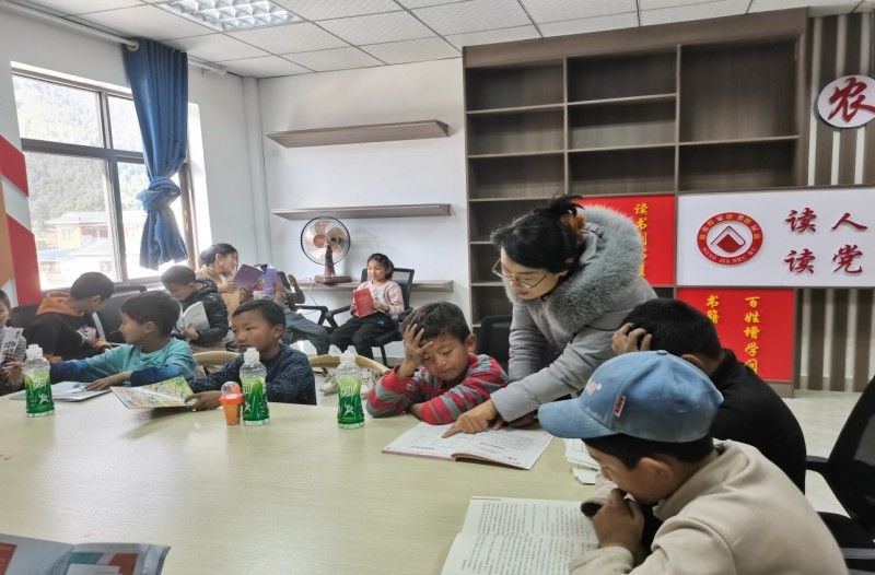 (圖為仲薩村開展“我的書屋我的夢”農家書屋少兒閱讀活動)