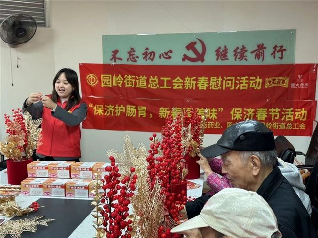 春節,鑼鼓聲聲,用愛意驅散寒冷,用問候撫慰心靈,為發揮人文關懷,給老人帶來溫馨與歡樂,2024年1月29日,王老吉藥業攜手國大藥房、園嶺街道總工會開展新春慰問養老院活動。