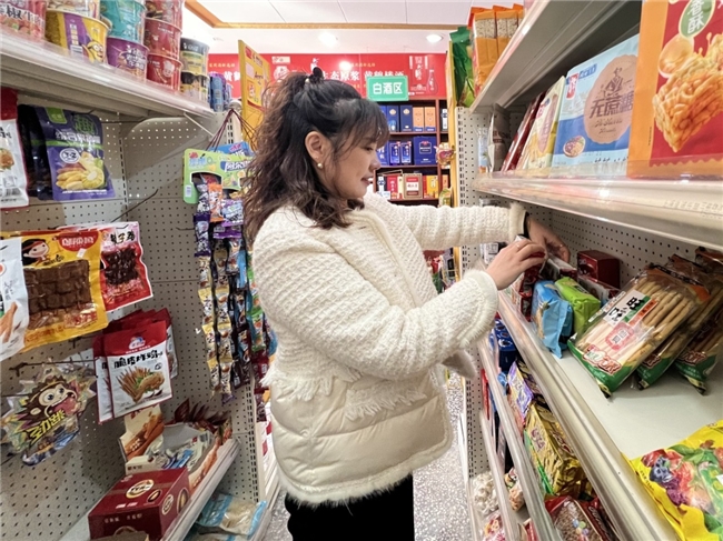 店內的顧客絡繹不絕,周進紅熱情接待著每位顧客,對于周進紅來說,細節決定成敗。“你看我店鋪里的陳列,也是有點講究的呢。剛開始開店的時候不太懂其中的門道,商品陳列按照自己的想法來,沒有考慮全面,一些顧客來找不到要買的東西,影響了消費體驗,我就積極學習店鋪的分區陳列,根據實際情況來調整,果然方便多了。”