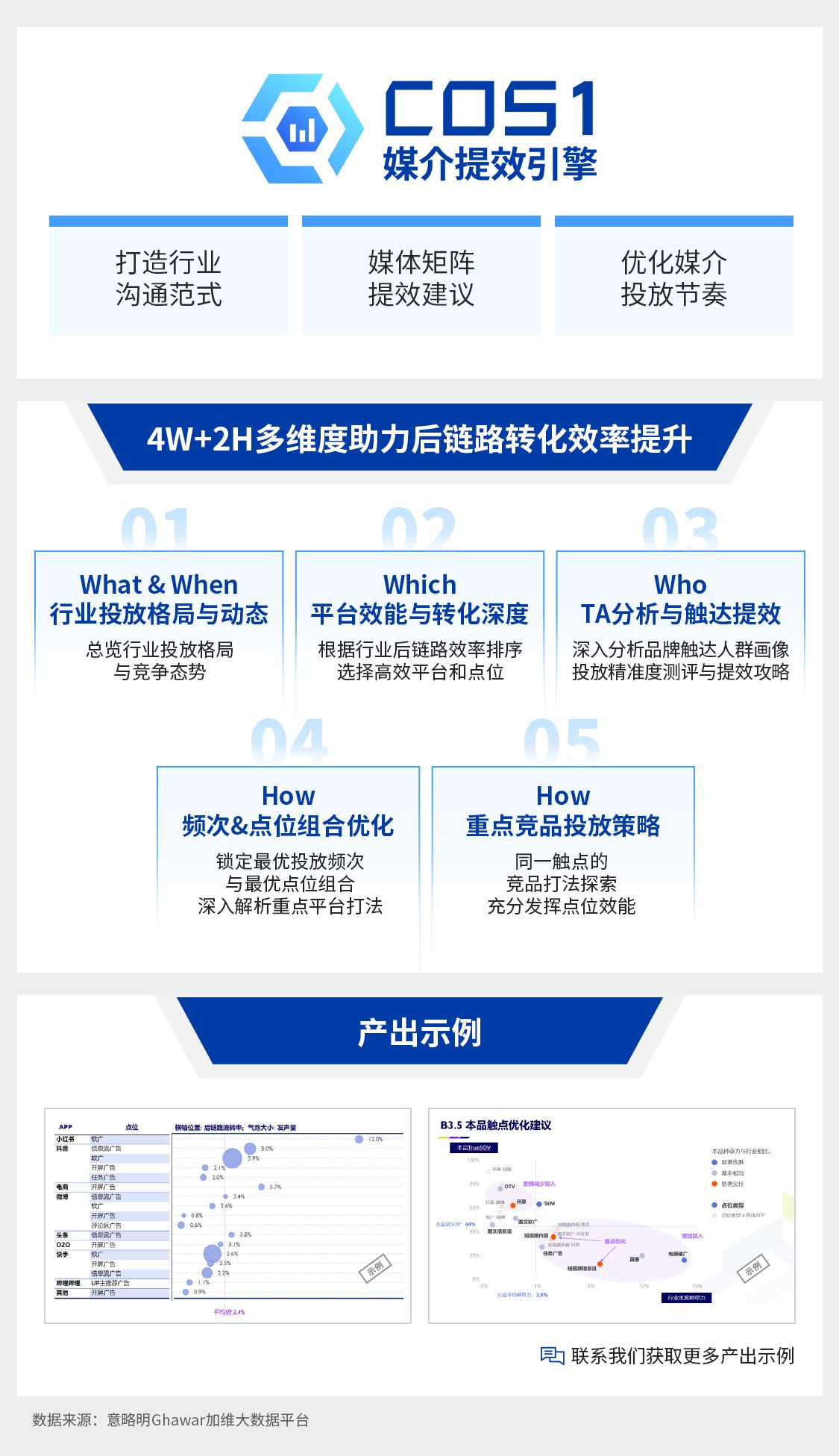憑借“4W+2H”的多維度數據,“媒介提效引擎”通過五大模塊助力后鏈路轉化效率提升: