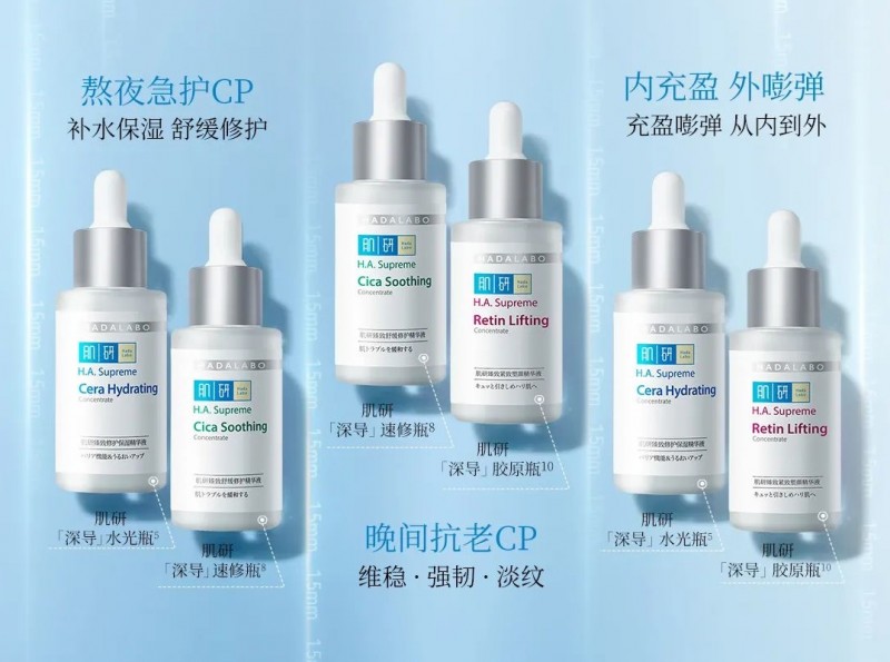 曼秀雷敦肌研臻致系列采用院線級水光技術,有效紓解壓力導致的各類肌膚問題,采用深導攻克、三招制勝的方法,將功效成分運輸直達肌底1.5mm,做到7天淡紋,28天減紋的直觀效果。