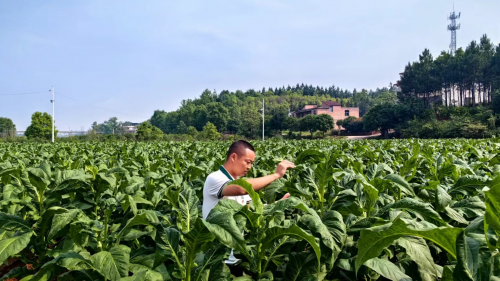 (煙葉技術員查看煙葉長勢)
