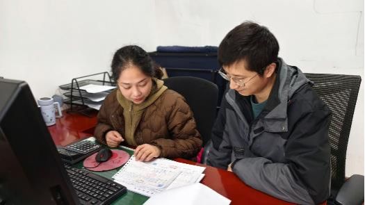 陳鳴(左一)指導同事報銷