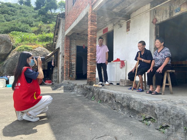 “他腿腳不方便,平時活動范圍最多就是在村里走走,之前想去鎮上拍攝證件照都很困難。我們村除了過年,年輕人會多點,平常都是空巢老人居多。”村書記說道。聽到這兒,志愿者們紛紛化身“移動照相館”,為村里的老人拍攝生活照,定格最美瞬間,讓老人們在活動中感受到真情與溫暖。