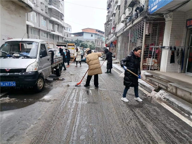 當日晚上,天氣愈發惡劣,甚至可以聽見冰粒撞擊窗戶的聲音。為了保證社區居民的出行安全,縣局在晚間發布通知,讓員工于2月24日早上前往各大社區參加二局民社區“兩清一暢”工作。通知一經發出,得到了員工們的積極響應。