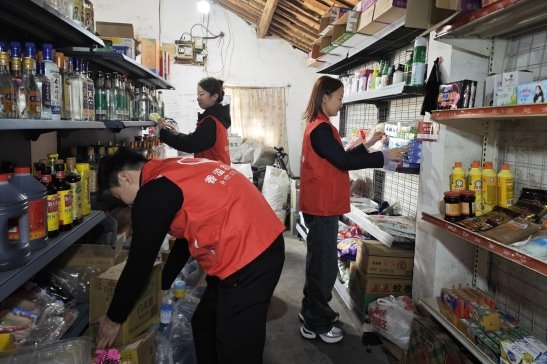 圖為“香溢”志愿者幫助零售戶整理貨架