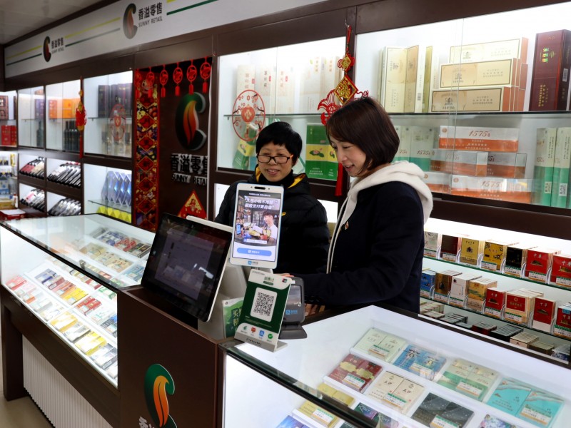 圖為任思思與零售戶溝通卷煙銷售情況。林可歆/攝