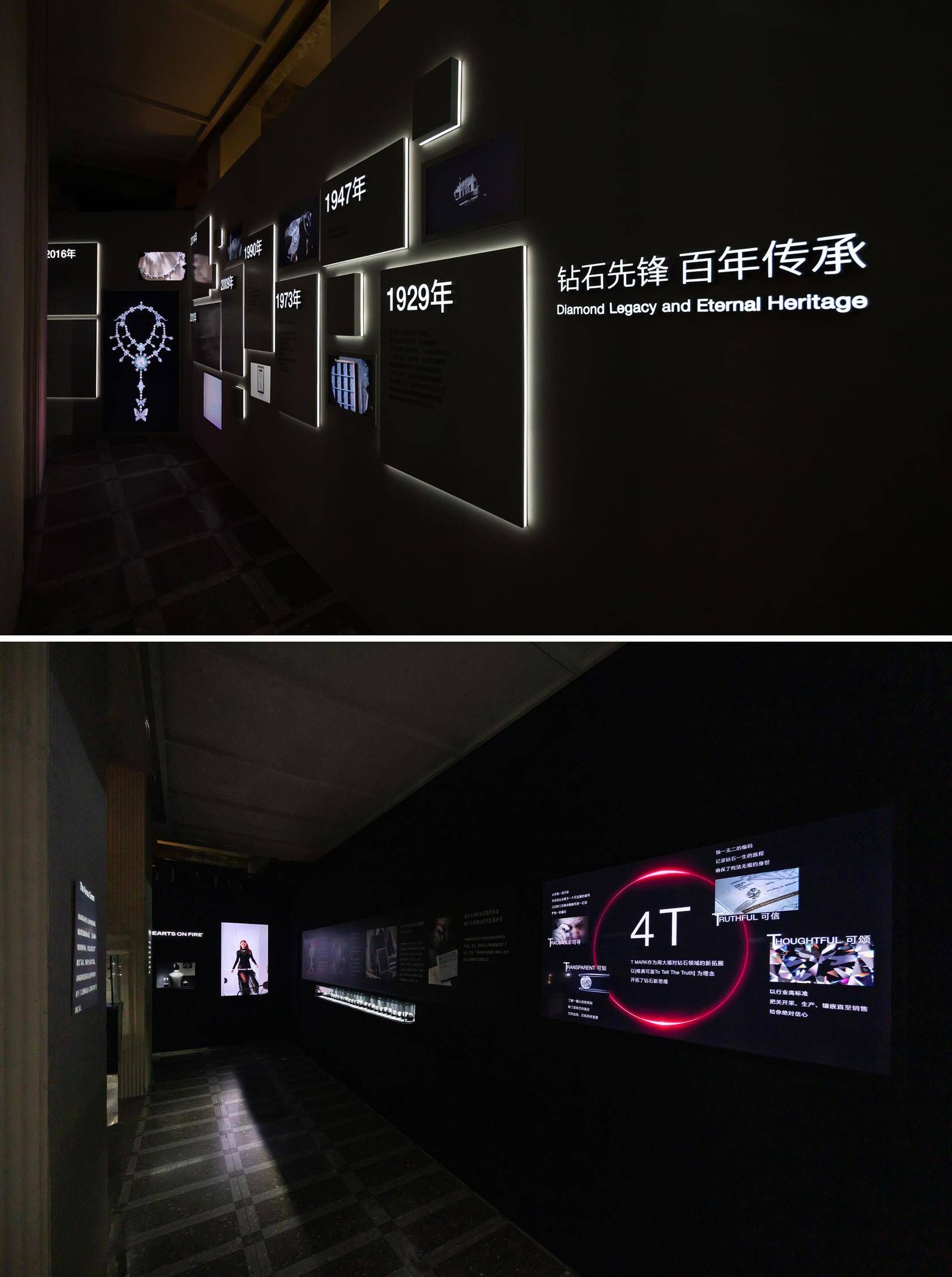 周大福一向嚴格把控天然鉆石原材料的采購,深耕于這一凝結時光的自然造物之美。在歷史長廊區,觀者可追尋時光的蹤影,細覽周大福自1929年成立以來的十一件里程碑故事,走過品牌在天然鉆石領域所留下的每一步堅實足跡。2016年,為了進一步保障消費者權益,周大福推出可追溯天然鉆石歷程的T MARK鉆石原材料品牌,通過專利納米技術在 T MARK 鉆石臺面上印有獨特的印記編碼,追溯鉆石由采購至成為鉆飾的蛻變始末。