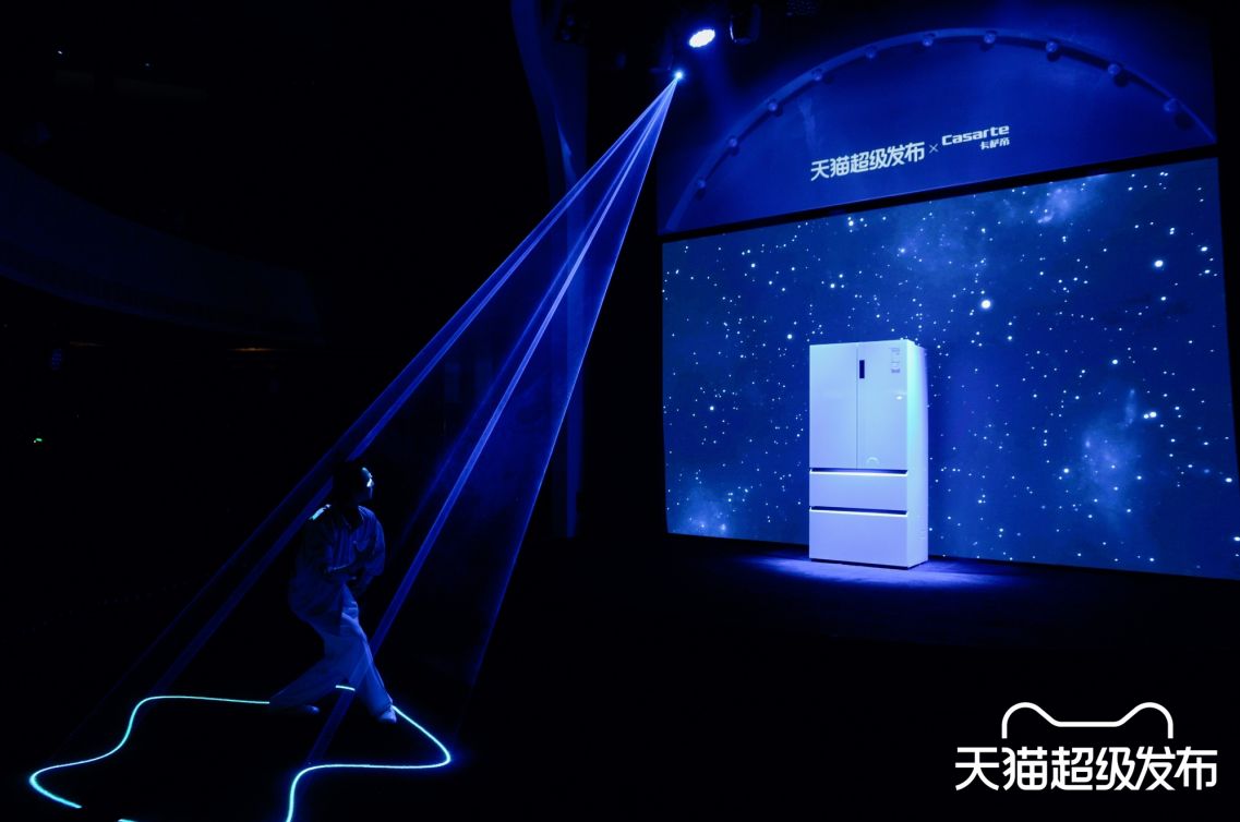 圍繞這一點,結合卡薩帝原創平嵌冰箱、卡薩帝攬光零嵌冰箱等核心產品,在本次「天貓超級發布」現場,卡薩帝通過星空藝術展,展示出卡薩帝原創平嵌冰箱的技術引領、卡薩帝攬光冰箱的星空夢幻設計,詮釋家的藝術。以一場銀河視覺光影秀,為用戶呈上夢幻星空之境。