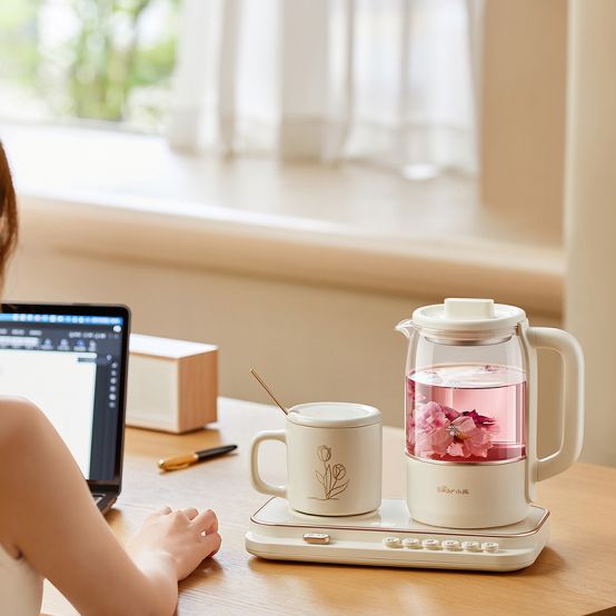 對辦公人群來說,小熊電器小氣泡養生壺套裝就是他們的養生首選。一壺多用,55℃暖飲、100℃燉煮、USB插口三合一,既可以恒溫暖杯、手機充電,還能煮花茶、水果茶、銀耳湯,讓職場人在忙碌間隙也能輕松養生。