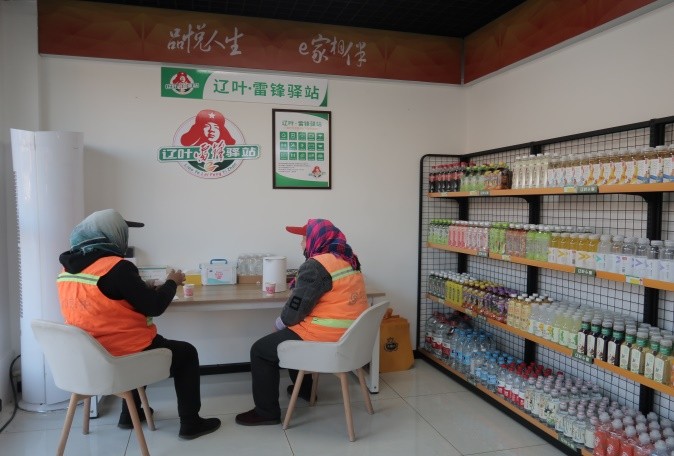 建設“雷鋒驛站” 、服務群眾 “零距離”。在大石橋市的“遼葉e家”店內,小小空間組成的“遼葉·雷鋒驛站”用愛和行動讓雷鋒精神在大石橋市內遍地開花,越來越多的社會力量在“雷鋒驛站”凝聚。“雷鋒驛站設置了專門區域為我們提供休息座椅,這里擺放著的礦泉水、消毒液、醫用口罩、雨傘、毛巾、方便面、熱水壺…醫藥箱等應急用品,都可以無償使用。”環衛工人說,這里已經成為暖心便民的陣地。