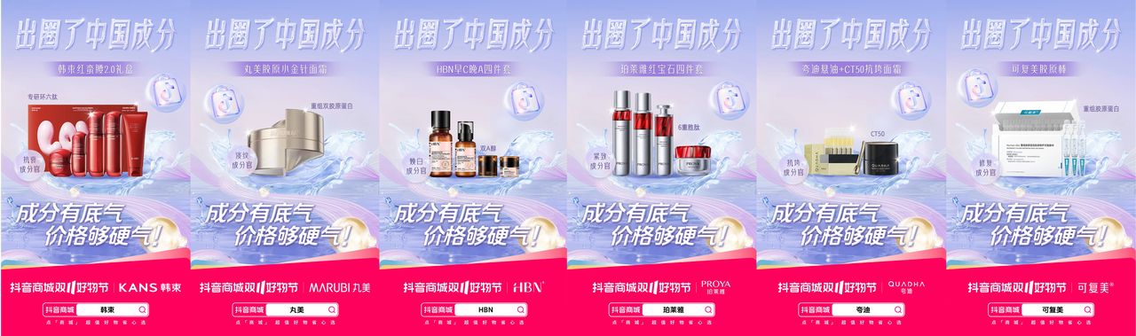 本次「出圈了中國成分」主題傳播活動中,抖音電商平臺深挖珀萊雅、薇諾娜、韓束等眾多護膚品牌成分,聚焦于成分這一核心優勢,幫助在美白、抗老、修護三大細分賽道持續領跑的國貨品牌們充分展示王牌成分。