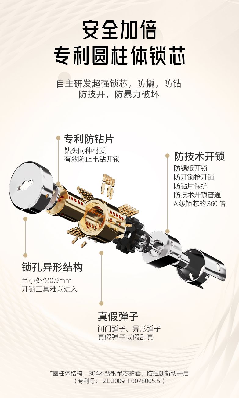 王力3.0防盜門不僅在夾手問題上取得了突破,更在智能化和安全性方面精益求精。配備王力專利超C級圓柱體鎖芯,防技開時間是國家C級標準的36倍;自動間隙補償結構能根據門的使用年限和天氣變化自動調節門縫,使用再久也不會晃動,不會發出異響;在續航上,王力防盜門采用了一次進出門只需電機轉動一次就能開門的設計,電機使用壽命是普通門鎖的4倍。
