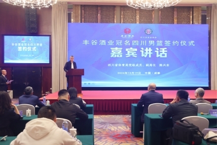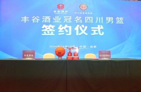 2024年10月19日下午四川省綿陽市豐谷酒業有限責任公司與四川省籃球協會在成都費爾頓大酒店舉行合作簽約儀式。四川省體育局黨組成員、副局長,四川體育職業學院黨委書記陳興東;四川發展(控股)公司黨委副書記、董事楊福林;溫江區委副書記、區長王軍;四川體育職業學院黨委副書記、院長劉漢權;四川發展(控股)公司總經理助理,川發資產兼豐谷酒業黨委書記、董事長李寒松;四川豐谷酒業黨委副書記、董事、總經理盧中明;四川省體育局競技體育處副處長胡莉娟;四川體育職業學院籃球運動管理中心書記、主任王曉亮;四川省籃球協會秘書長姜楠;豐谷酒業副總經理、豐谷銷售公司黨總支書記、執行董事李文平;四川錦城藍鯨籃球俱樂部董事長耿潔以及省市區各相關單位負責人出席本次簽約儀式等共同出席簽約儀式。雙方將發揮各自資源優勢,建立合作伙伴關系,攜手推動籃球運動宣傳普及,助力中國體育事業蓬勃發展。