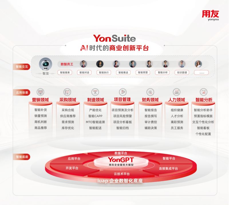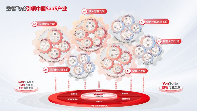 數智飛輪2.0重點呈現了六個業務級場景方案,包含支出管控飛輪、收入管控飛輪、供應鏈協同飛輪、業財一體合規飛輪、數智人力飛輪和全球化飛輪等,切實符合當下成長型企業老板的關注和所需,500多個業務場景、100多個AI+應用場景以及50多個數據應用場景,全面覆蓋企業管理和運營的各個環節,滿足各行各業的需要,推動成長型企業的高速發展,也意味著用友YonSuite業務全面走向成熟。